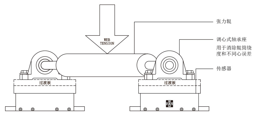 UPB系列传感器采用分离轴台式安装张力辊安装在轴承座上.轴承座与传感器之间通过过渡板连接。